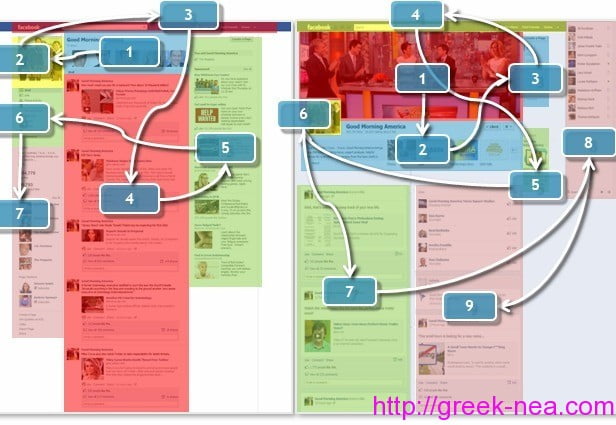 Λοιπόν, έχετε αυτή την απορία, δηλαδή τι κοιτούν οι άνθρωποι στο προφίλ σας, τότε δεν είστε μόνοι όπως είπαμε, και για το λόγο αυτό η εταιρεία EyeTrackShop έκανε μια έρευνα, με 30 συμμέτοχους, με το μοναδικό σκοπό για να δώσει απαντήσει σε αυτή την απορία. Στην έρευνα χρησιμοποιήθηκαν κάμερες στους 30 συμμετεχόντων, οι οποίες κατέγραφαν τις κινήσεις των ματιών τους. Και στην συνεχεία όταν αυτοί επισκέπτονταν διάφορα προφίλ στο Facebook, η κάμερα κατέγραφαν τις κινήσεις των ματιών μέσα στο διάστημα των πρώτων 10 δευτερολέπτων.